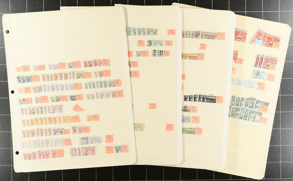 A tidy 16-page collector accumulation with good coverage of regular and "back of the book" issues. Both mint and used, with each stamp identified by Scott and a 10-year-old catalogue price. Some notable singles include #47 (mint and used), #53 (x5 used), #53a (used), #54 (x4 used). Lots of Azores and Republica overprints and Portuguese colonial common design issues. Up to 10 of a type, with some cancel potential amongst the used. Lots of value here. Estimate =