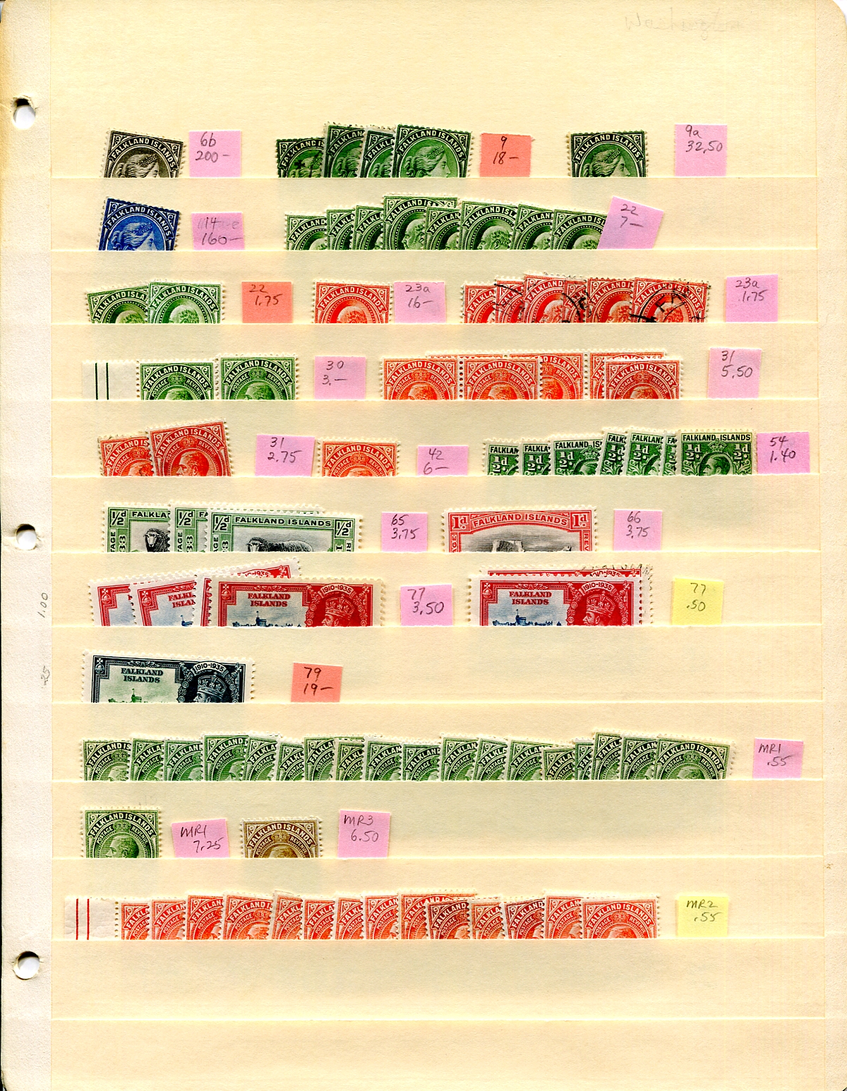 A mostly mint accumulation of Queen Victoria to King George VI regular war tax issues on five manila stockpages. A couple of potentially better QV side face (a couple also have no gum). The other strength is in the KGVI era, with #85a (x5 mint, 1 NH), a number of #87A and #89, plus 7 each of #90-91. The last KGVI set includes 4x 1/- Penguins (#115) and two copies of #116. Nice condition, a few used with nice cancels. Lots of catalogue value. Estimate =