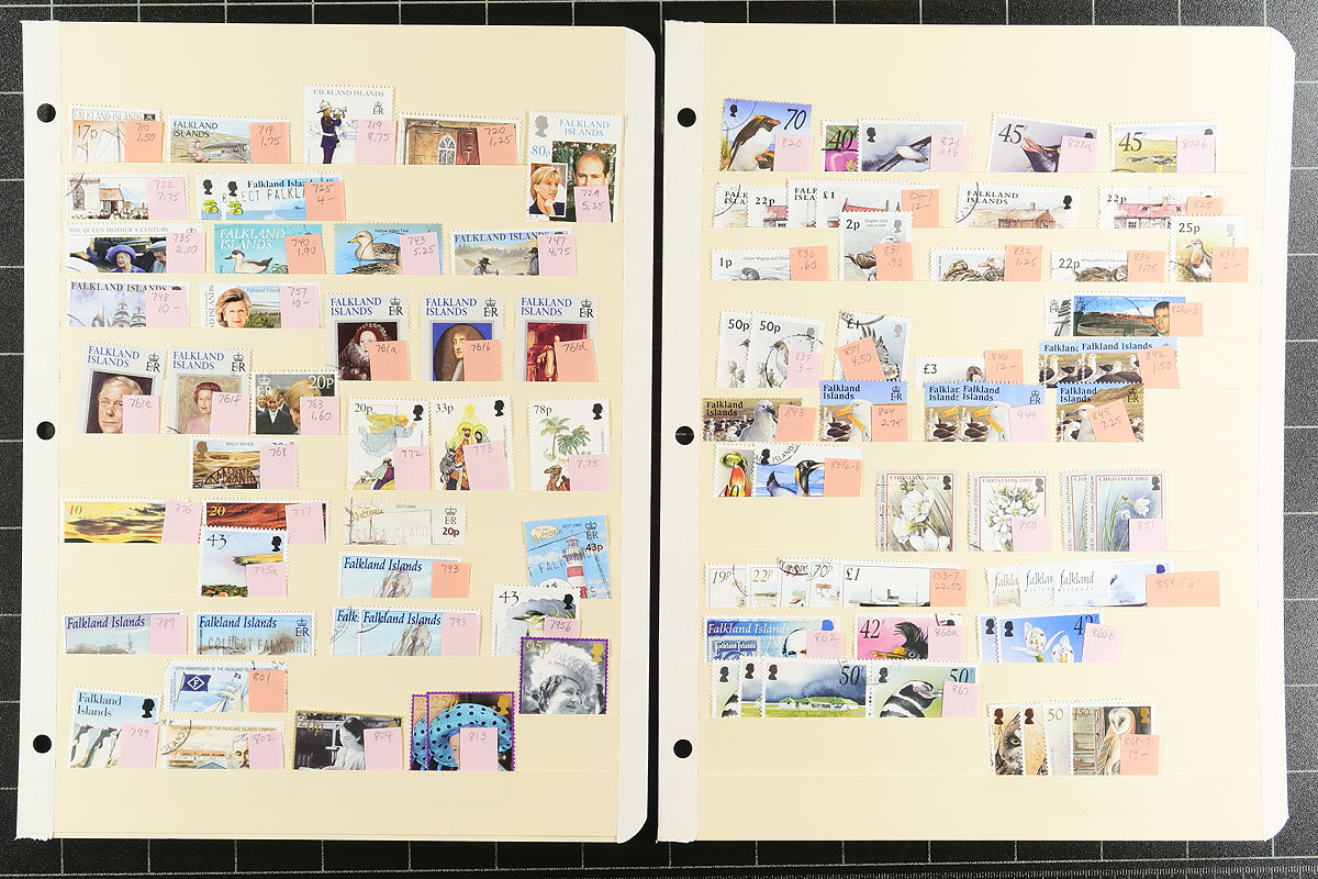 A substantial holding of material issued during the reign of Queen Elizabeth II (up to 2015), a mix of mint and used, with quantities of up to 20 of a type. A couple of the early sets are "short", including the birds, and by the 1960’s there are lots of common design issues, plus lengthy runs of definitives, and some better commemorative sets and singles with substantial topical appeal. Some notable more recent material includes #237-40, #254a-256a, #387-401, #840. Lots of items with catalogue values up to $10.00 each. 23 manila stockpages with over 1500 stamps. Estimate =