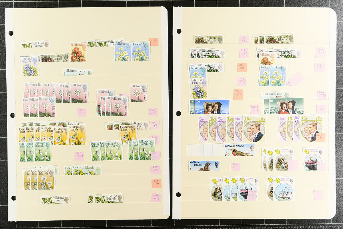 A substantial holding of material issued during the reign of Queen Elizabeth II (up to 2015), a mix of mint and used, with quantities of up to 20 of a type. A couple of the early sets are "short", including the birds, and by the 1960’s there are lots of common design issues, plus lengthy runs of definitives, and some better commemorative sets and singles with substantial topical appeal. Some notable more recent material includes #237-40, #254a-256a, #387-401, #840. Lots of items with catalogue values up to $10.00 each. 23 manila stockpages with over 1500 stamps. Estimate =