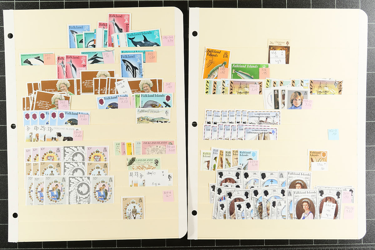 A substantial holding of material issued during the reign of Queen Elizabeth II (up to 2015), a mix of mint and used, with quantities of up to 20 of a type. A couple of the early sets are "short", including the birds, and by the 1960’s there are lots of common design issues, plus lengthy runs of definitives, and some better commemorative sets and singles with substantial topical appeal. Some notable more recent material includes #237-40, #254a-256a, #387-401, #840. Lots of items with catalogue values up to $10.00 each. 23 manila stockpages with over 1500 stamps. Estimate =