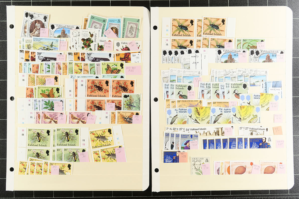 A substantial holding of material issued during the reign of Queen Elizabeth II (up to 2015), a mix of mint and used, with quantities of up to 20 of a type. A couple of the early sets are "short", including the birds, and by the 1960’s there are lots of common design issues, plus lengthy runs of definitives, and some better commemorative sets and singles with substantial topical appeal. Some notable more recent material includes #237-40, #254a-256a, #387-401, #840. Lots of items with catalogue values up to $10.00 each. 23 manila stockpages with over 1500 stamps. Estimate =