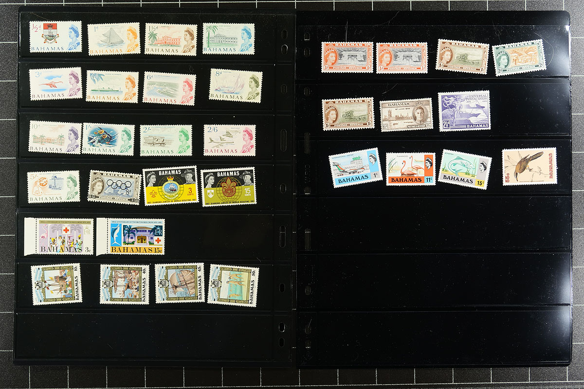 Anguilla to New Zealand on black stockpages (most Vario, some Hagner). Mostly mint, King George VI to about 2002. Mostly a page or two per country, strong in Australia and New Zealand, but we saw Antigua, Bahamas, Bermuda, British Honduras, Cayman Is, Christmas Is, Cocos (Keeling), Cook Is, Dominica, Gambia, Gilbert Is, Grenada, Jamaica, Malta, Mauritius, Montserrat and more! Singles, sets, short sets. Great topical appeal, and better values scattered throughout. All in great condition, including the pages! Estimate =