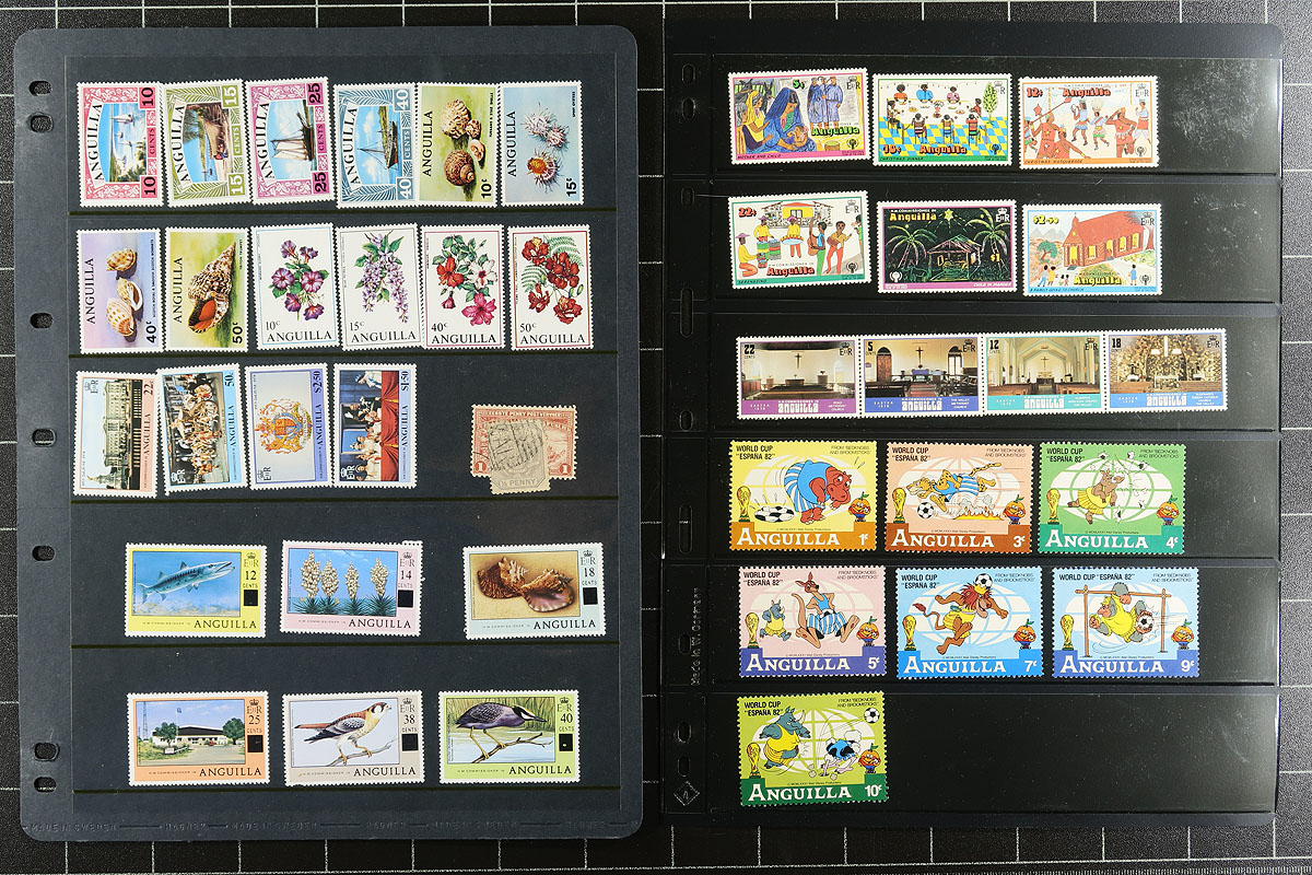 Anguilla to New Zealand on black stockpages (most Vario, some Hagner). Mostly mint, King George VI to about 2002. Mostly a page or two per country, strong in Australia and New Zealand, but we saw Antigua, Bahamas, Bermuda, British Honduras, Cayman Is, Christmas Is, Cocos (Keeling), Cook Is, Dominica, Gambia, Gilbert Is, Grenada, Jamaica, Malta, Mauritius, Montserrat and more! Singles, sets, short sets. Great topical appeal, and better values scattered throughout. All in great condition, including the pages! Estimate =