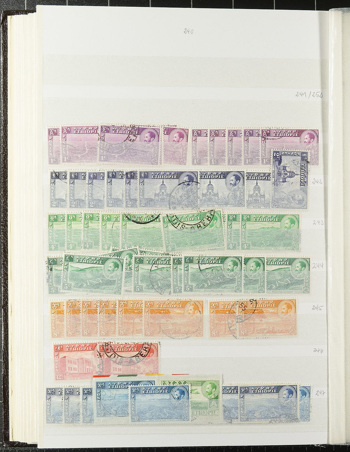 Researcher dream lot of 1919 to 1975 issues, both mint and used, with a dizzying array of inter-war era overprints, with good coverage to the end of the Selassie reign and some semi-postal and airmail. Thousands of stamps, organized into a 56-page stockbook (not sure if it was rebuilt or suffered a production issue, but a few pages in the centre are mounted upside down(!). A holding that hasn’t seen the light of day in almost 50 years! Estimate =
