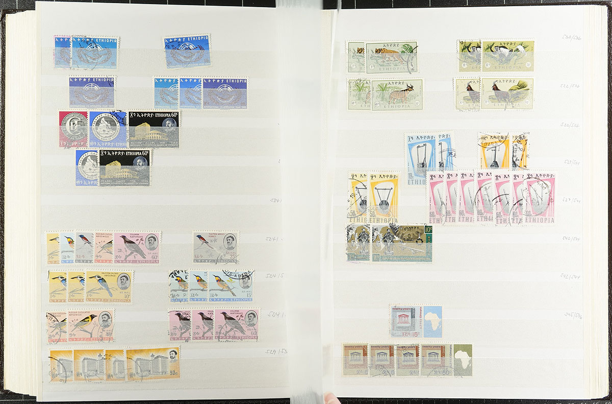 Researcher dream lot of 1919 to 1975 issues, both mint and used, with a dizzying array of inter-war era overprints, with good coverage to the end of the Selassie reign and some semi-postal and airmail. Thousands of stamps, organized into a 56-page stockbook (not sure if it was rebuilt or suffered a production issue, but a few pages in the centre are mounted upside down(!). A holding that hasn’t seen the light of day in almost 50 years! Estimate =