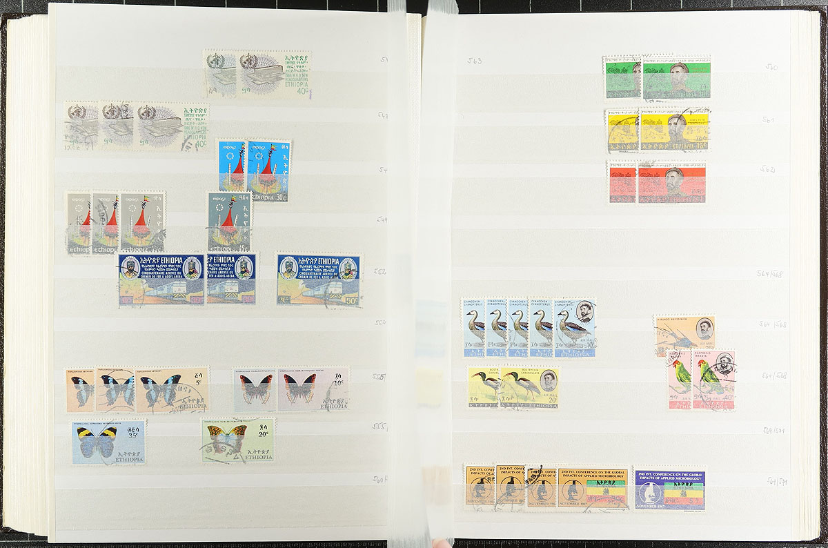 Researcher dream lot of 1919 to 1975 issues, both mint and used, with a dizzying array of inter-war era overprints, with good coverage to the end of the Selassie reign and some semi-postal and airmail. Thousands of stamps, organized into a 56-page stockbook (not sure if it was rebuilt or suffered a production issue, but a few pages in the centre are mounted upside down(!). A holding that hasn’t seen the light of day in almost 50 years! Estimate =