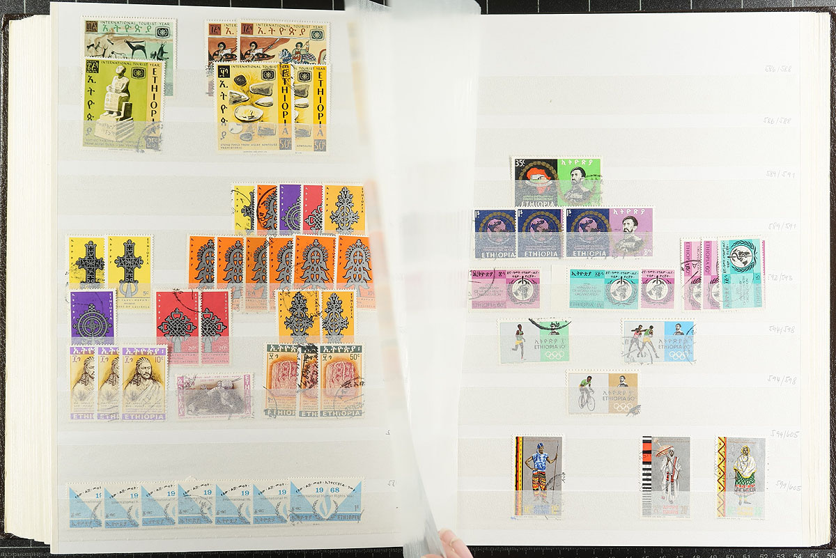 Researcher dream lot of 1919 to 1975 issues, both mint and used, with a dizzying array of inter-war era overprints, with good coverage to the end of the Selassie reign and some semi-postal and airmail. Thousands of stamps, organized into a 56-page stockbook (not sure if it was rebuilt or suffered a production issue, but a few pages in the centre are mounted upside down(!). A holding that hasn’t seen the light of day in almost 50 years! Estimate =