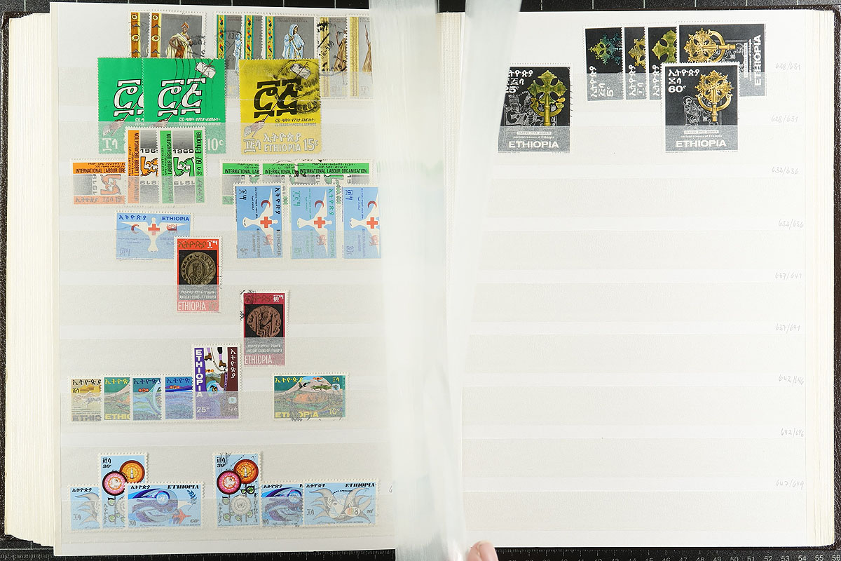 Researcher dream lot of 1919 to 1975 issues, both mint and used, with a dizzying array of inter-war era overprints, with good coverage to the end of the Selassie reign and some semi-postal and airmail. Thousands of stamps, organized into a 56-page stockbook (not sure if it was rebuilt or suffered a production issue, but a few pages in the centre are mounted upside down(!). A holding that hasn’t seen the light of day in almost 50 years! Estimate =