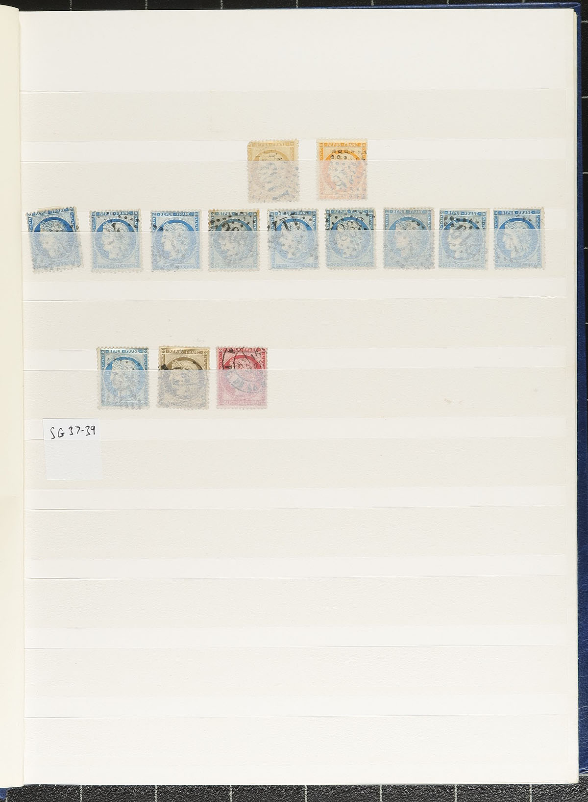 Massive and mostly 19th century used hoard packed into a 32-page Edelweiss stockbook. Substantial quantities of various "Napoleon III" issues, with lots of material for collectors of diamond dot "numeral" cancels, followed by some perforated "Bordeaux" design, and then masses of the "Peace and Commerce" issue, lots of "Sowers" and then tapering out quickly into 20th century commemoratives. Catalogue values appear to be up to $12.00 each, with thousands of stamps. A great study opportunity! Estimate =