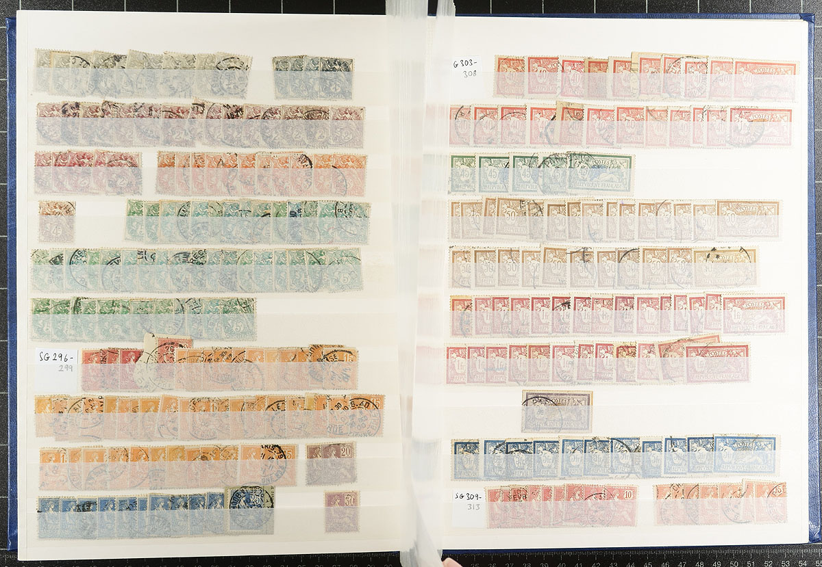 Massive and mostly 19th century used hoard packed into a 32-page Edelweiss stockbook. Substantial quantities of various "Napoleon III" issues, with lots of material for collectors of diamond dot "numeral" cancels, followed by some perforated "Bordeaux" design, and then masses of the "Peace and Commerce" issue, lots of "Sowers" and then tapering out quickly into 20th century commemoratives. Catalogue values appear to be up to $12.00 each, with thousands of stamps. A great study opportunity! Estimate =