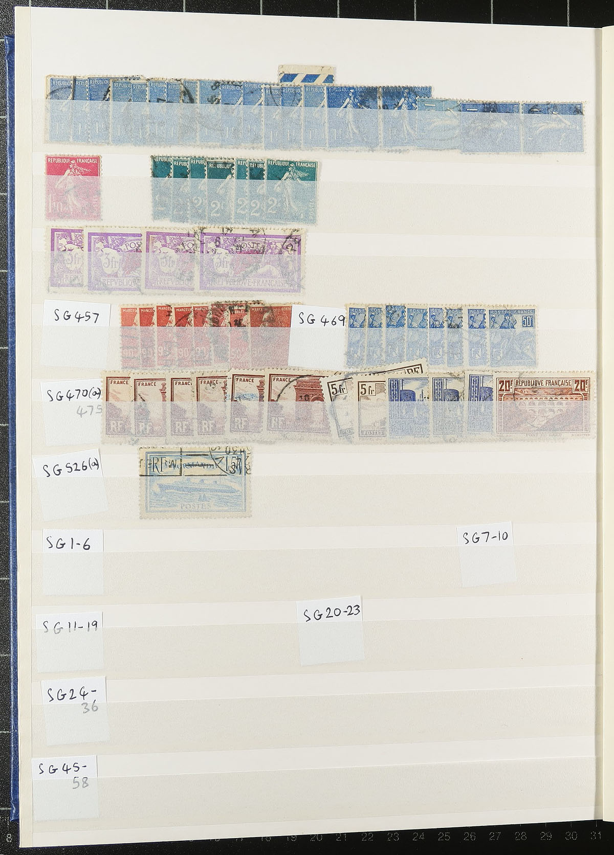 Massive and mostly 19th century used hoard packed into a 32-page Edelweiss stockbook. Substantial quantities of various "Napoleon III" issues, with lots of material for collectors of diamond dot "numeral" cancels, followed by some perforated "Bordeaux" design, and then masses of the "Peace and Commerce" issue, lots of "Sowers" and then tapering out quickly into 20th century commemoratives. Catalogue values appear to be up to $12.00 each, with thousands of stamps. A great study opportunity! Estimate =