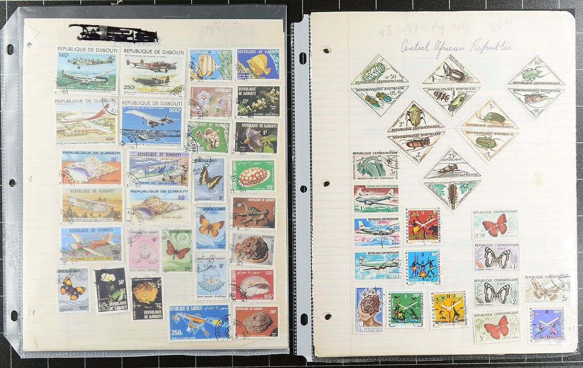 Mostly African colonies, and mostly pre-1950. Starts with a nice Scott Specialized album with an assortment of around 1000 different stamps, a mix of mint and used (most in clear mounts) from about 20 colonies. The second section is some dealer stock (a bit of "classic", noting several used copies of Zanzibar #47 and Alexandria #30) and a bit of modern), including a couple of souvenir sheets. The final is a couple of mounted groups of modern, mostly used. Lots of value here. Estimate =