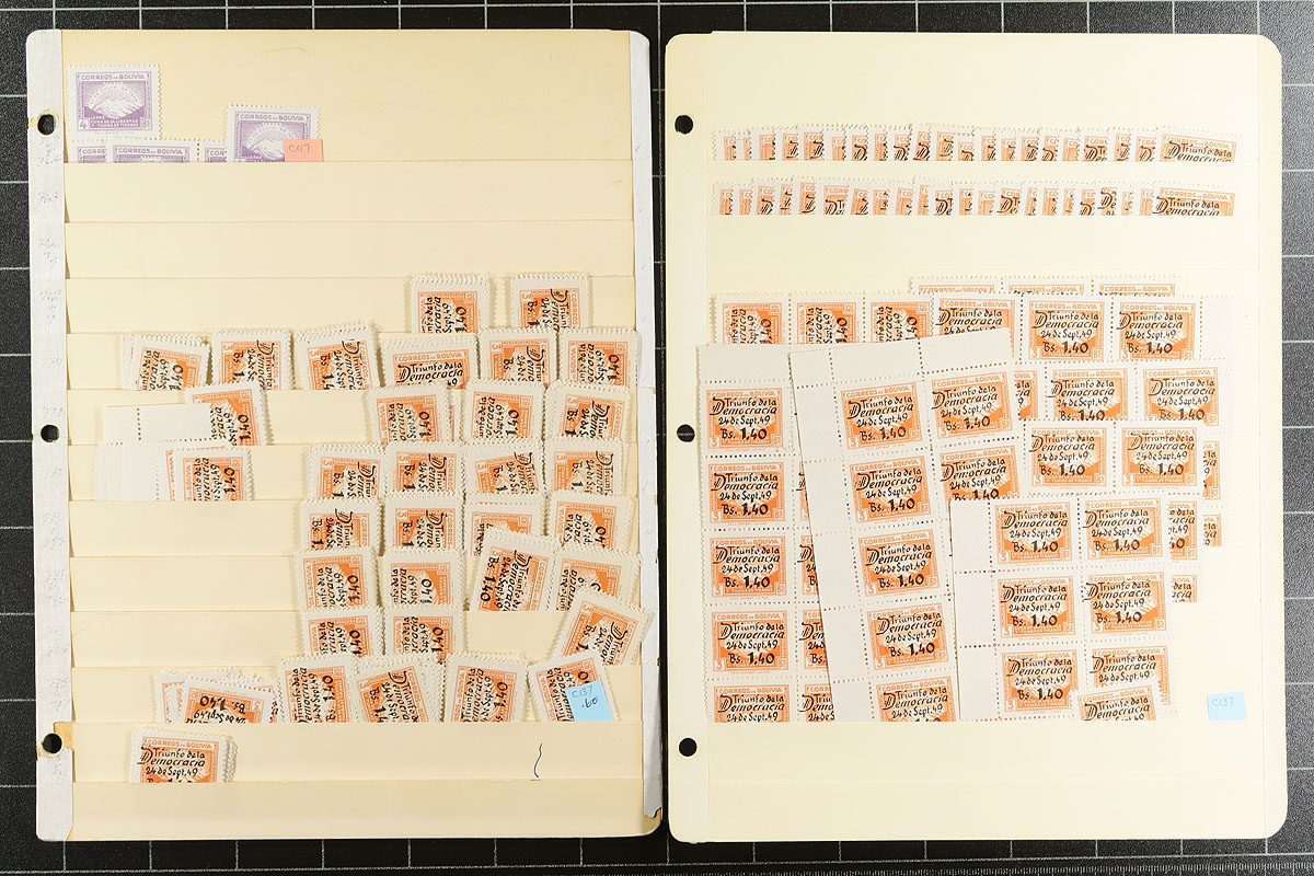 A South America holding on over 30 manila stockpages. Strongest is Argentina, Bolivia, Brazil and Venezuela, but there are touches of a few other countries. Mint, used, mostly pre-1960, lots of back of the book and moderate to heavy duplication in places. Most identified with recent Scott catalogue values. Most are up to $8.00 catalogue value, with a couple of better. Estimate =