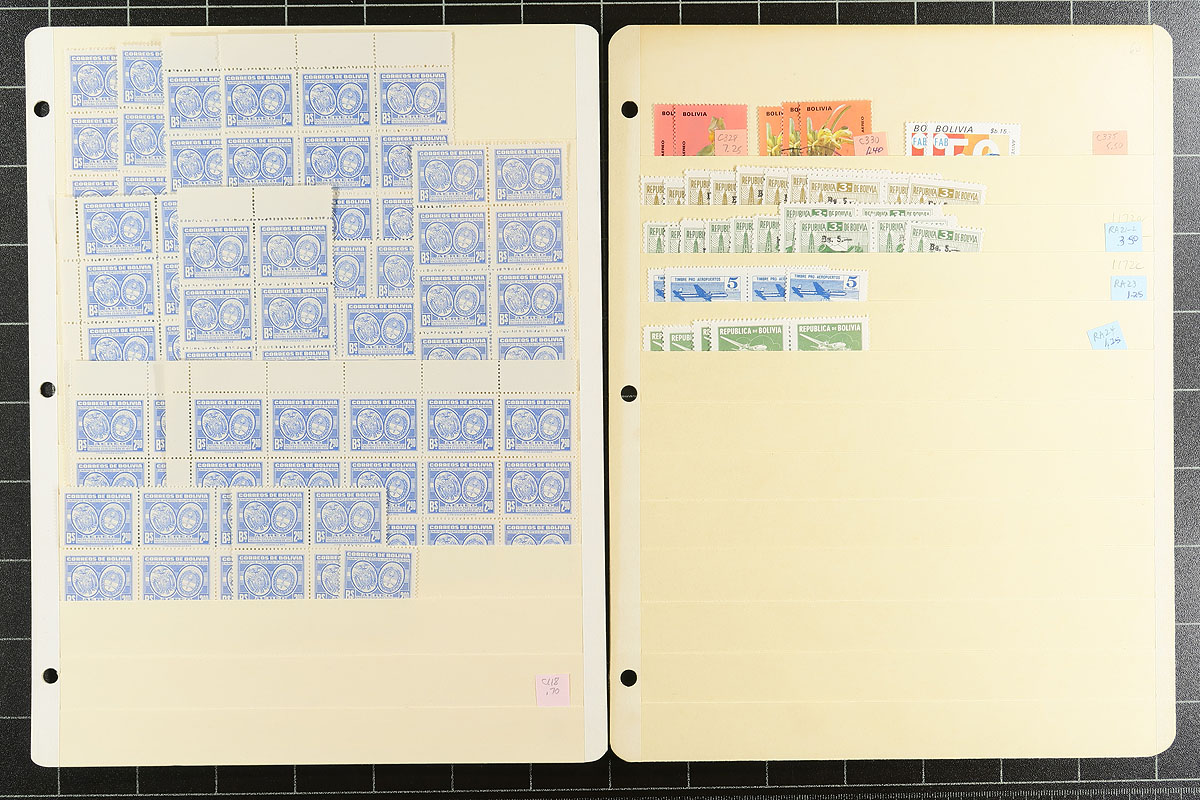 A South America holding on over 30 manila stockpages. Strongest is Argentina, Bolivia, Brazil and Venezuela, but there are touches of a few other countries. Mint, used, mostly pre-1960, lots of back of the book and moderate to heavy duplication in places. Most identified with recent Scott catalogue values. Most are up to $8.00 catalogue value, with a couple of better. Estimate =