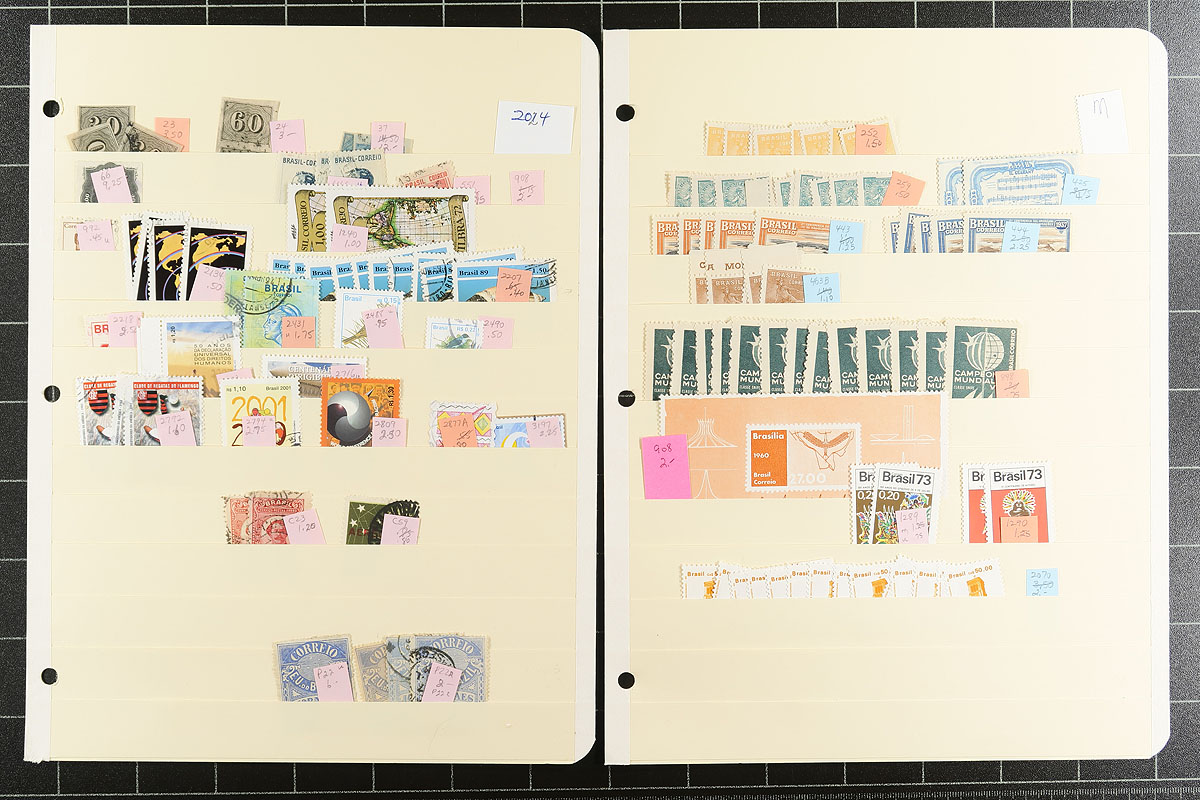 A South America holding on over 30 manila stockpages. Strongest is Argentina, Bolivia, Brazil and Venezuela, but there are touches of a few other countries. Mint, used, mostly pre-1960, lots of back of the book and moderate to heavy duplication in places. Most identified with recent Scott catalogue values. Most are up to $8.00 catalogue value, with a couple of better. Estimate =
