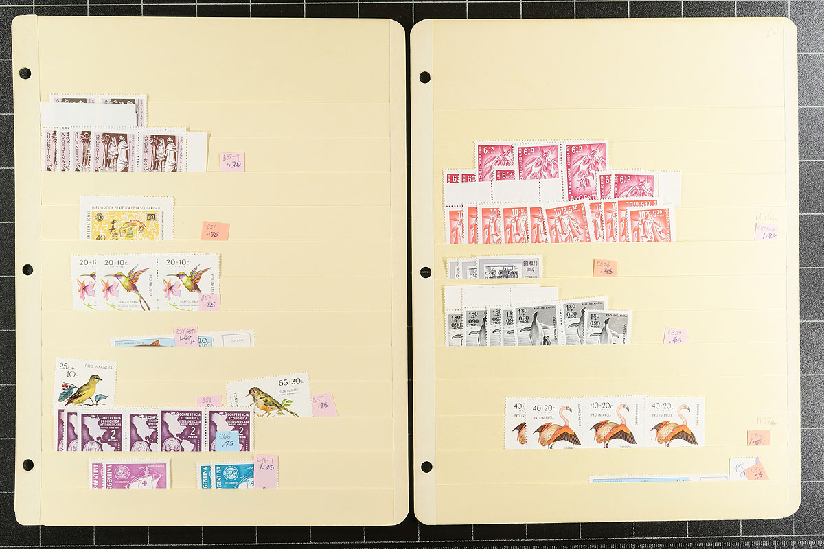 A South America holding on over 30 manila stockpages. Strongest is Argentina, Bolivia, Brazil and Venezuela, but there are touches of a few other countries. Mint, used, mostly pre-1960, lots of back of the book and moderate to heavy duplication in places. Most identified with recent Scott catalogue values. Most are up to $8.00 catalogue value, with a couple of better. Estimate =