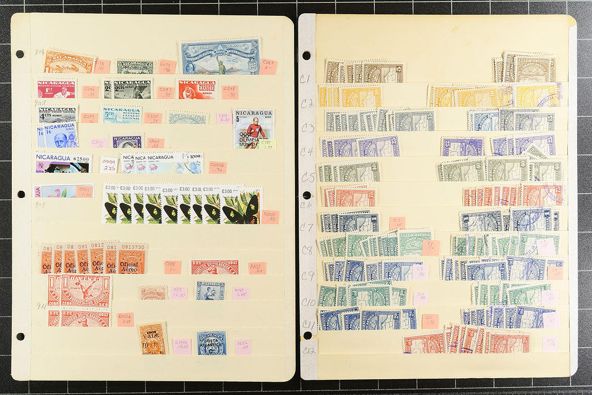 A South America holding on over 30 manila stockpages. Strongest is Argentina, Bolivia, Brazil and Venezuela, but there are touches of a few other countries. Mint, used, mostly pre-1960, lots of back of the book and moderate to heavy duplication in places. Most identified with recent Scott catalogue values. Most are up to $8.00 catalogue value, with a couple of better. Estimate =