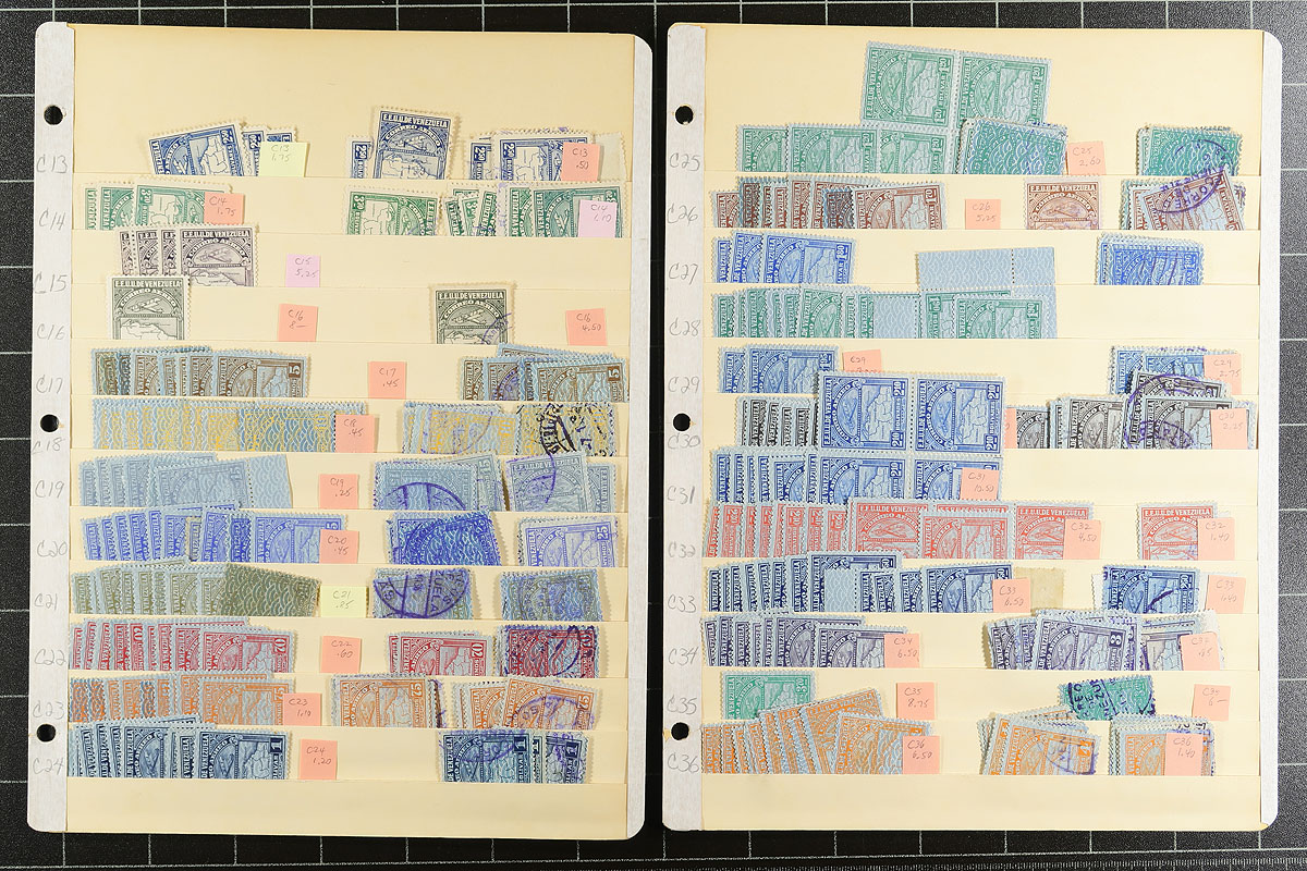 A South America holding on over 30 manila stockpages. Strongest is Argentina, Bolivia, Brazil and Venezuela, but there are touches of a few other countries. Mint, used, mostly pre-1960, lots of back of the book and moderate to heavy duplication in places. Most identified with recent Scott catalogue values. Most are up to $8.00 catalogue value, with a couple of better. Estimate =