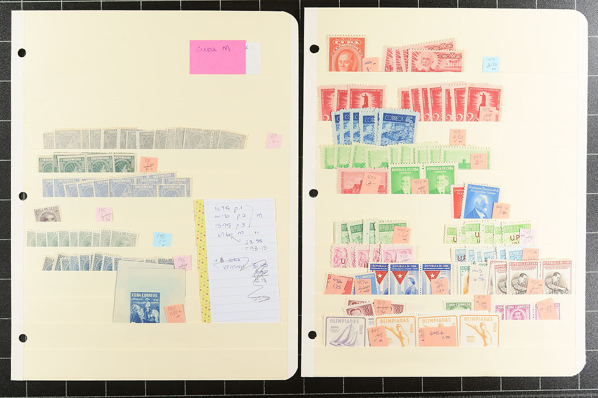 A Latin America holding on a couple dozen manila stockpages. Arranged in alphabetical order by country, with Chile, Colombia, Costa Rica, Paraguay, Peru, El Salvador, Uruguay, Venezuela. Mint, used, mostly pre-1970, lots of back of the book and moderate to heavy duplication in places. Most identified with recent Scott catalogue values of up to $8.00 each, with a couple of better. There is also some fun or dubious material, identified by the consignor to help round out your collection and increase your expertise at the same time. Estimate =