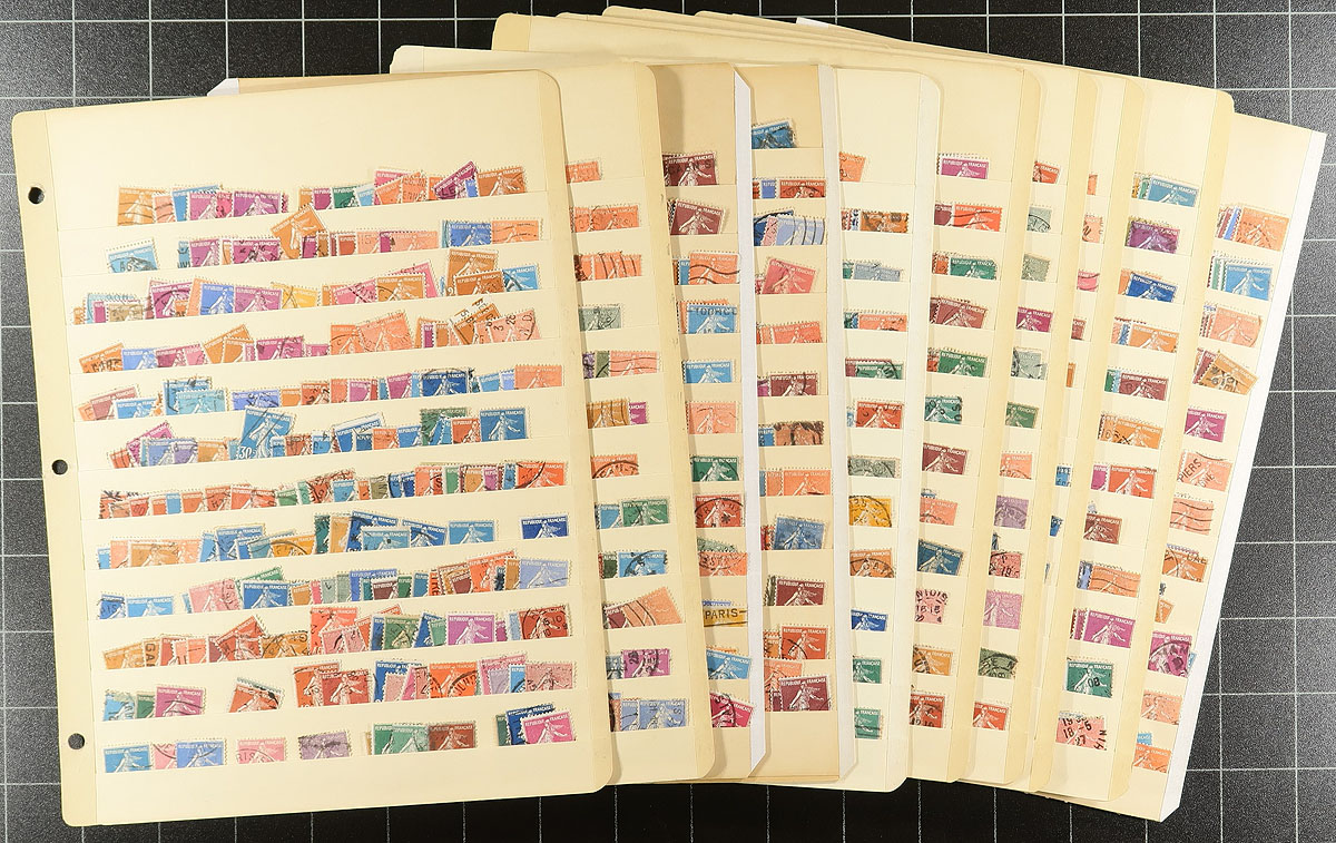 "Sower"-stravaganza. A massive holding of used. Part 1 is a shoebox with thousands of examples sorted by Scott number into envelopes. Part 2 is a seemingly unorganized accumulation packed into 50 manila stockpages, with no obvious pattern of storage. Presumably there is cancel potential and exploration opportunities for the specialist, and who knows what else. Our estimate is that there could be over 15,000 stamps here. Estimate =
