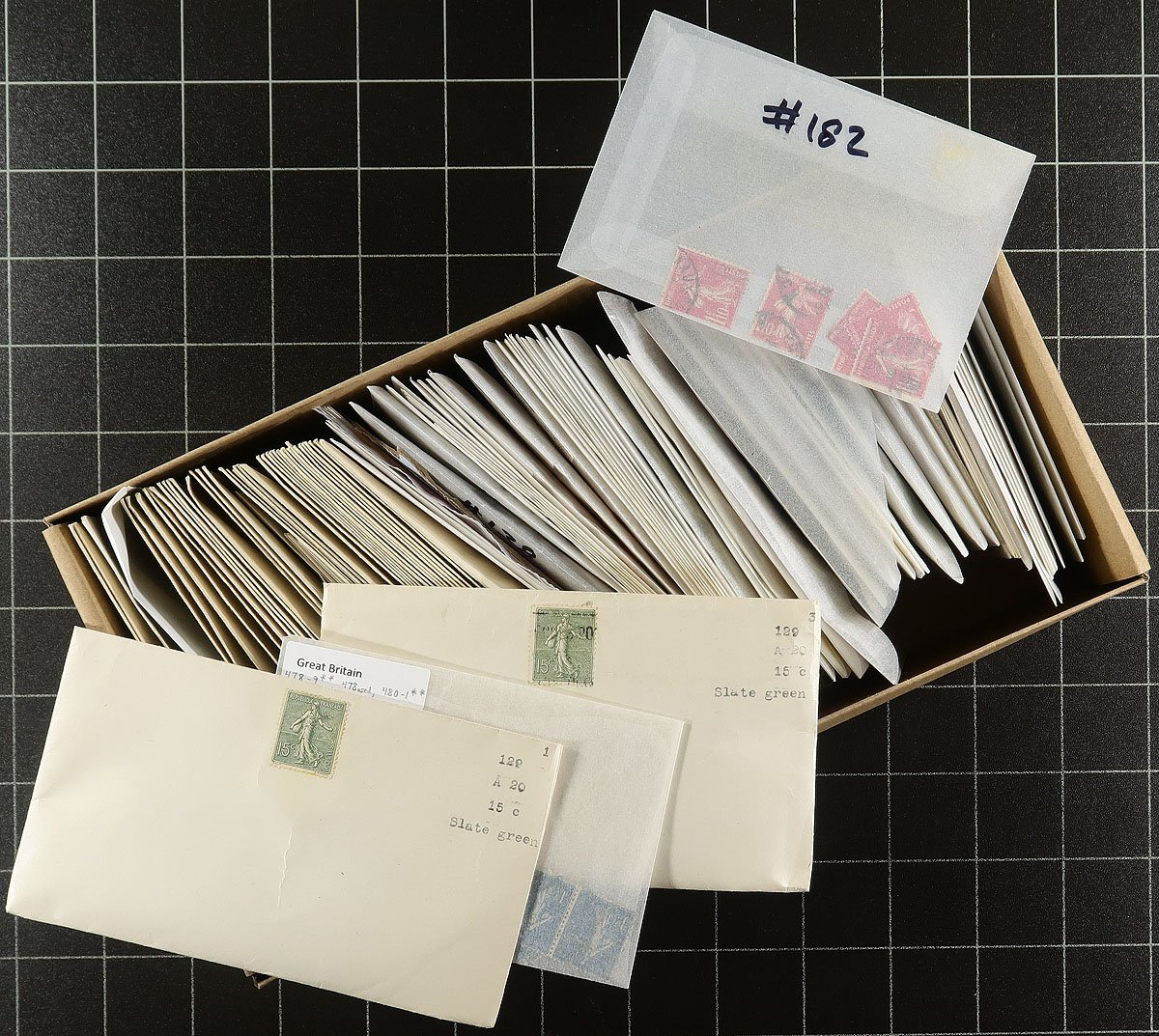 "Sower"-stravaganza. A massive holding of used. Part 1 is a shoebox with thousands of examples sorted by Scott number into envelopes. Part 2 is a seemingly unorganized accumulation packed into 50 manila stockpages, with no obvious pattern of storage. Presumably there is cancel potential and exploration opportunities for the specialist, and who knows what else. Our estimate is that there could be over 15,000 stamps here. Estimate =