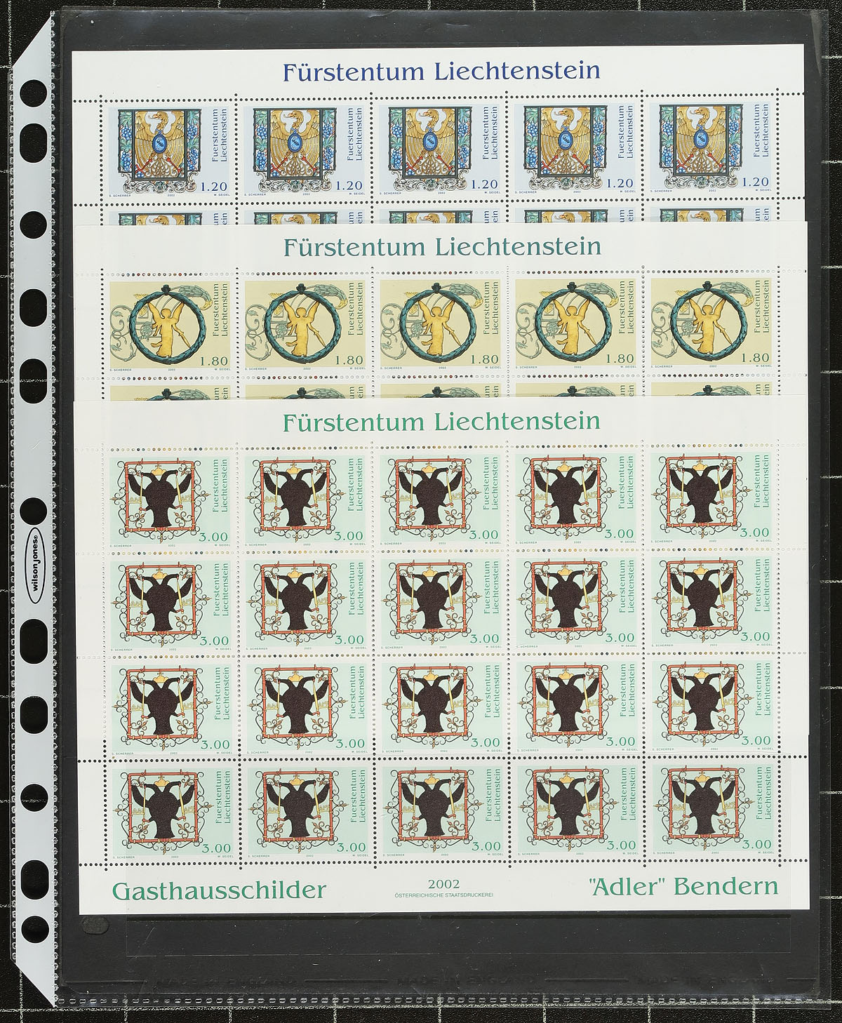 Sheetlet hoard #8, a bit hit or miss group of sheetlets of 20, all mint never hinged and issued between 2001-2005. Includes "Buildings", "Royalty", "Aerial Views", "Olympics" etc. An attractive grouping. These issues have relatively low print quantities and outrageous original face value (due to the Swiss Franc being the currency in use). Catalogue value is often at (or less than) the face value. 2024 Scott US$930.00 =