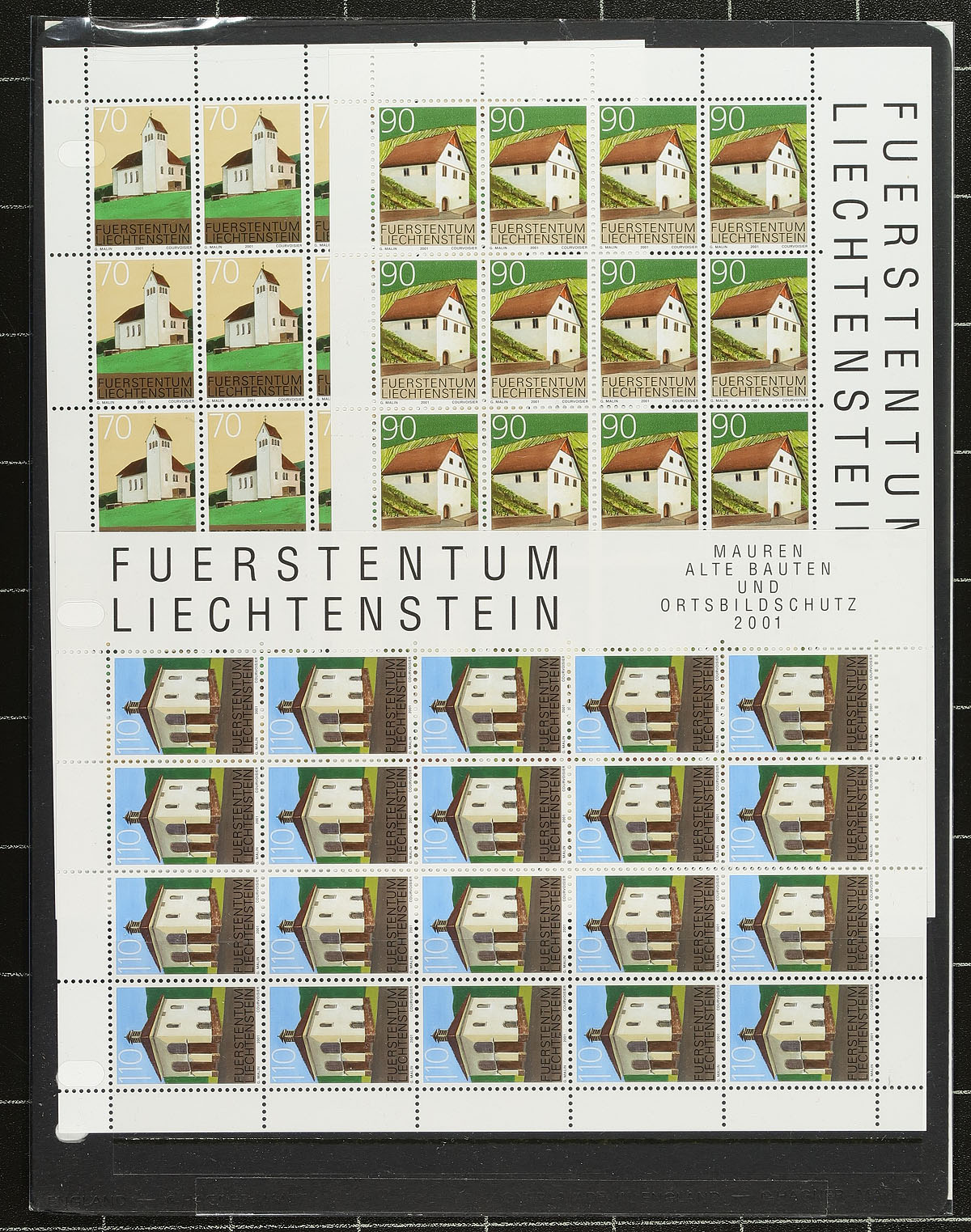Sheetlet hoard #8, a bit hit or miss group of sheetlets of 20, all mint never hinged and issued between 2001-2005. Includes "Buildings", "Royalty", "Aerial Views", "Olympics" etc. An attractive grouping. These issues have relatively low print quantities and outrageous original face value (due to the Swiss Franc being the currency in use). Catalogue value is often at (or less than) the face value. 2024 Scott US$930.00 =