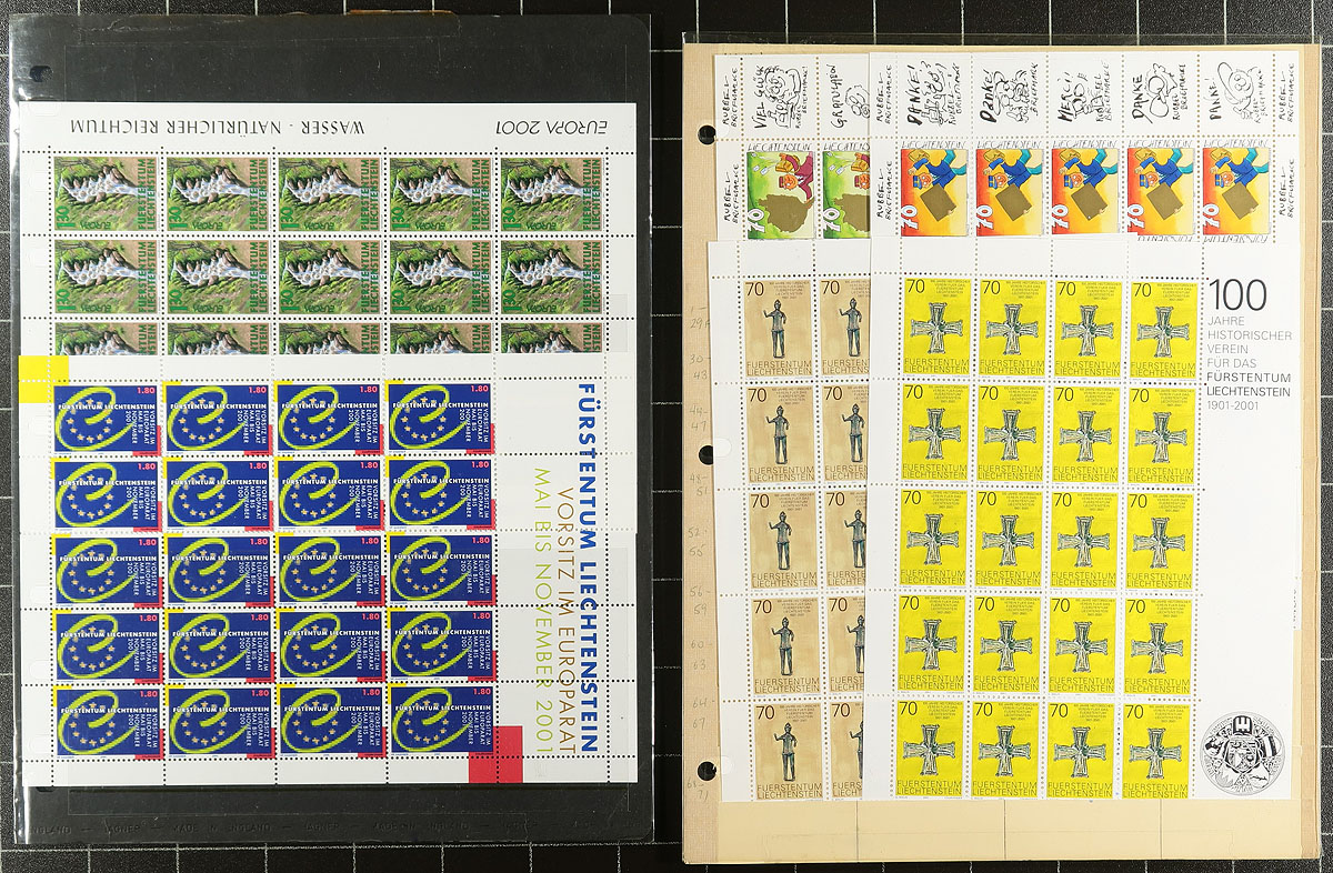 Sheetlet hoard #7, a selection of sheetlets of 20, all mint never hinged and issued between 2000-2001. Includes "Crafts", #1208, "Presidents", "Mushrooms", "Christmas" etc. An attractive grouping. These issues have relatively low print quantities and outrageous original face value (due to the Swiss Franc being the currency in use). Catalogue value is often at (or less than) the face value. 2024 Scott US$683.00 =