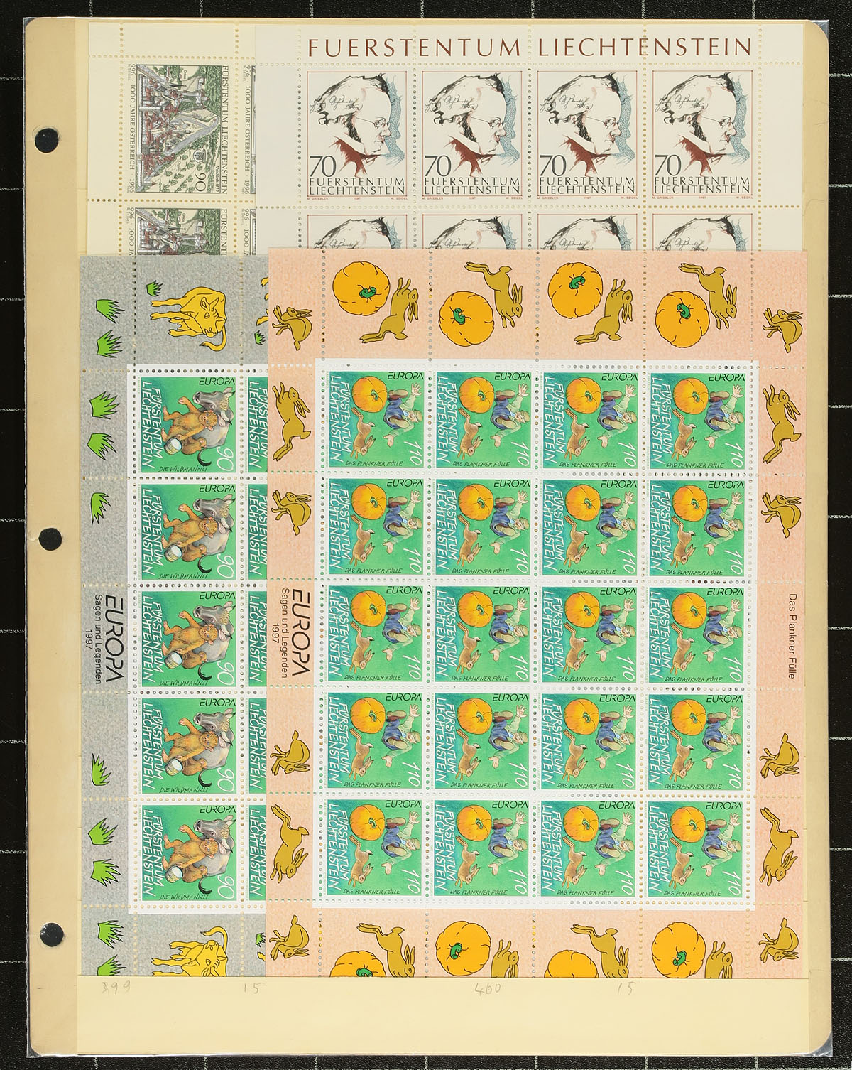 Sheetlet hoard #6, a bit hit or miss group of sheetlets of 20, all mint never hinged and issued between 1996-1998. Includes "Historical Sites", "Mushrooms", "Christmas" etc. An attractive grouping. These issues have relatively low print quantities and outrageous original face value (due to the Swiss Franc being the currency in use). Catalogue value is often at (or less than) the face value. 2024 Scott US$789.00 =