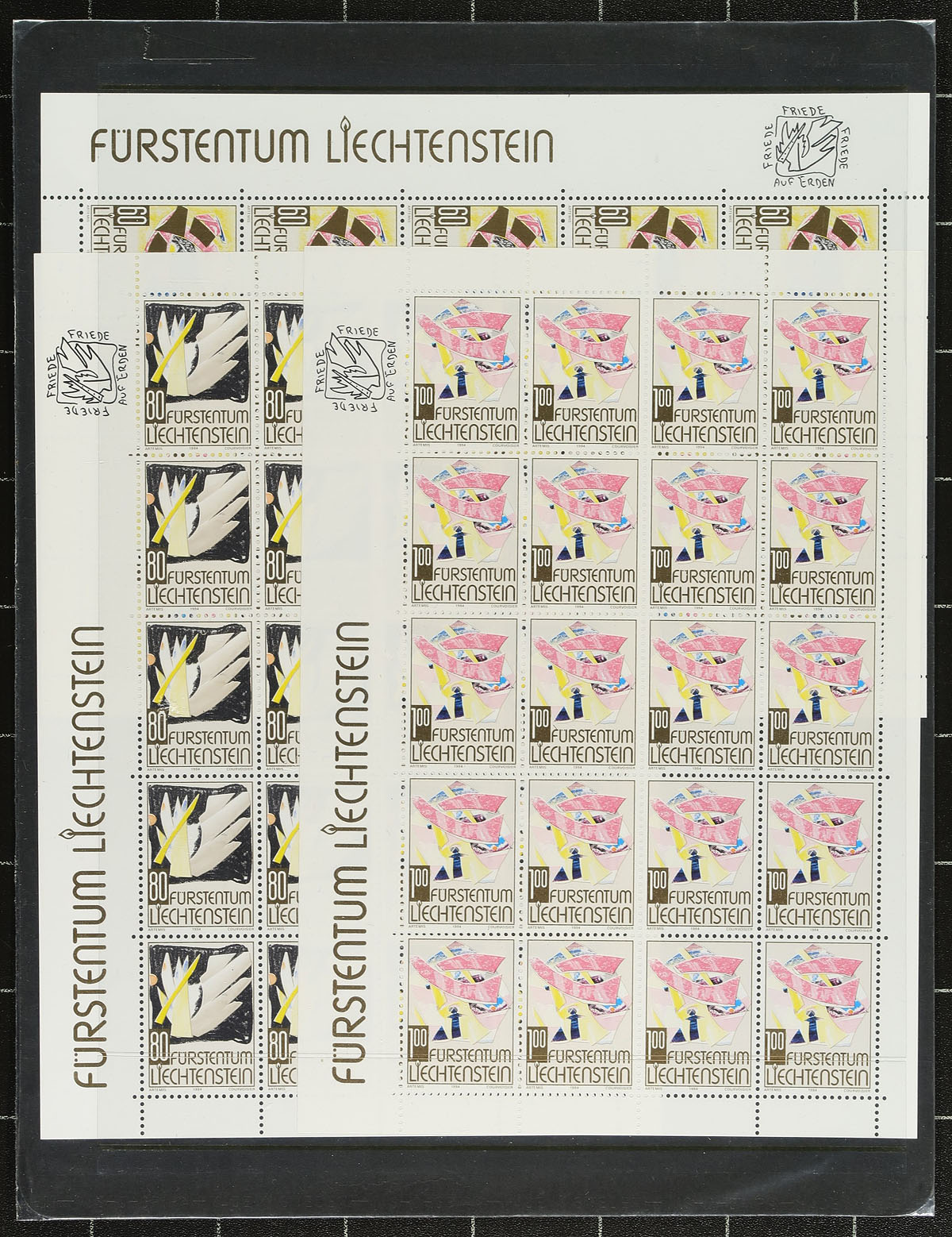 Sheetlet hoard #5, a near-complete group of sheetlets of 20, all mint never hinged issued in 1994. Includes "World Cup", "Olympics", Birds", "Letter Writing", "Minerals", "Christmas" etc. An attractive grouping. These issues have relatively low print quantities and outrageous original face value (due to the Swiss Franc being the currency in use). Catalogue value is often at (or less than) the face value. 2024 Scott US$435.00 =