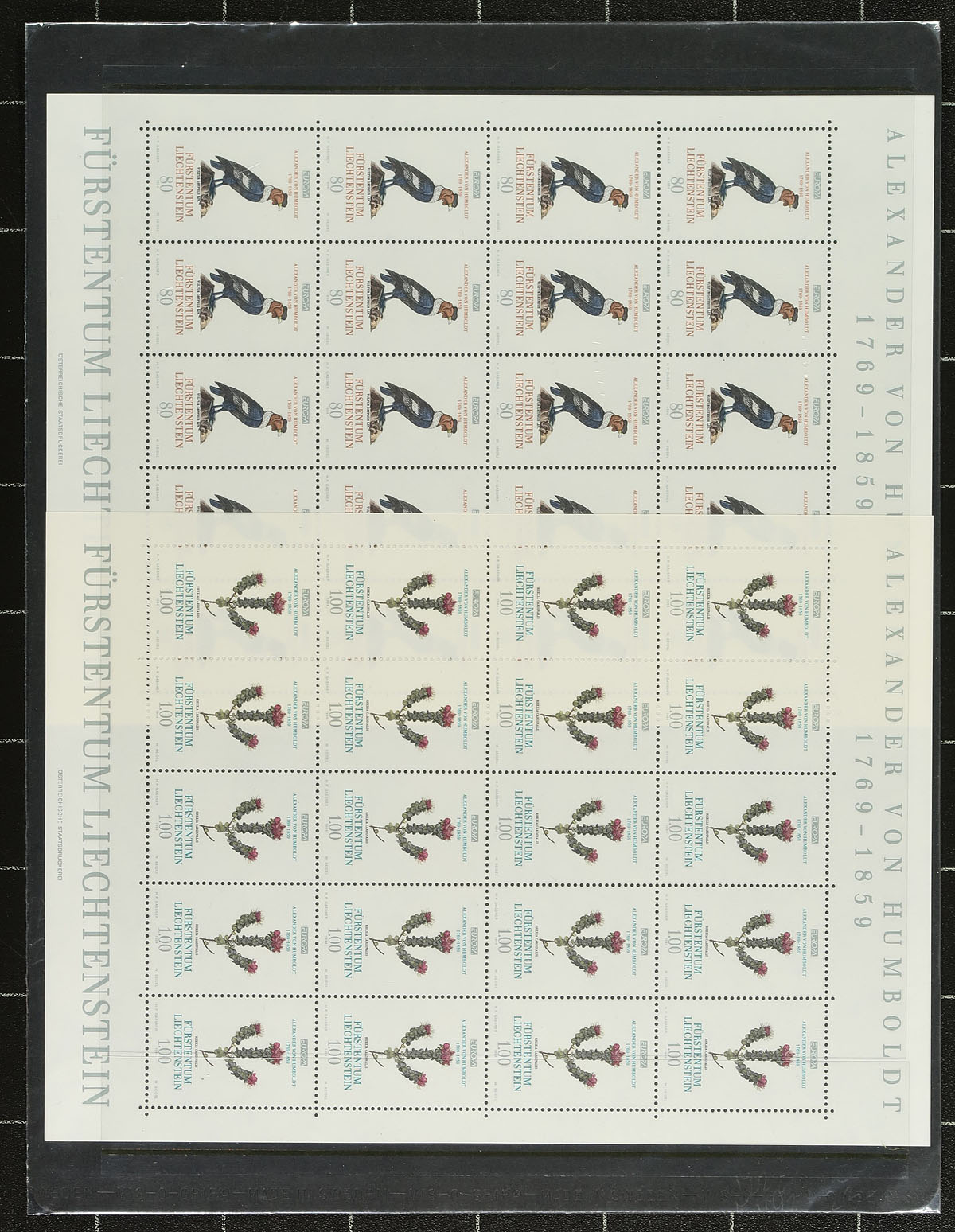 Sheetlet hoard #5, a near-complete group of sheetlets of 20, all mint never hinged issued in 1994. Includes "World Cup", "Olympics", Birds", "Letter Writing", "Minerals", "Christmas" etc. An attractive grouping. These issues have relatively low print quantities and outrageous original face value (due to the Swiss Franc being the currency in use). Catalogue value is often at (or less than) the face value. 2024 Scott US$435.00 =