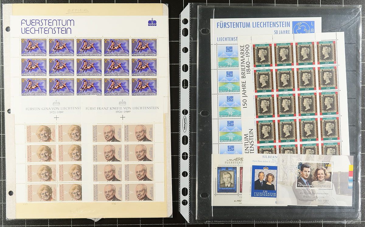 Sheetlet hoard #3. A decent grouping of sheetlets of 20, all mint never hinged and issued between 1990-1991. Includes "Mountains", UN, "Paintings", "Penny Black", Europa, etc. An attractive grouping. These issues have relatively low print quantities and outrageous original face value (due to the Swiss Franc being the currency in use). Catalogue value is often at (or less than) the face value. 2024 Scott US$941.00 =