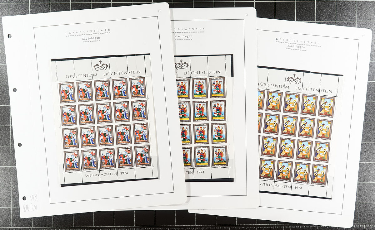 Sheetlet hoard #1, a mixed bag of sheetlets of 20 (or 8, or 12 and a couple of souvenir sheets), all mint never hinged and issued between 1956-1979. An attractive grouping, created from different sources, meaning that a bit of minor duplication is to be expected (a few are in original sales folders). These issues have relatively low print quantities and outrageous original face value (due to the Swiss Franc being the currency in use). Catalogue value is often at (or less than) the face value. A couple of damaged items are not counted in the 2024 Scott US$700.00 =