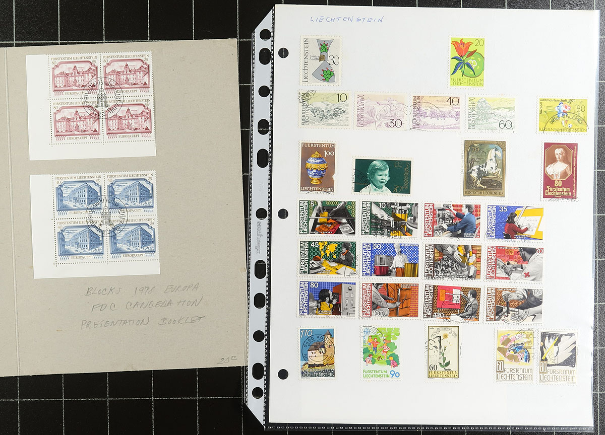 A used accumulation with a mix of classics and modern material and not much duplication, perfect for filling in holes or building a whole new collection. The best single is #104 (with a couple of blunt perfs, catalogue US$350.00), and we note the "Sports" issues of 1954 and 1955. There are some used souvenir sheets (including from 1936), a few groups of blocks (particularly 1987 and 1988 plus a folder with the Europa issue of 1978). Some used sheetlets, of 8 and 12 (mostly circa 1987) were seen and there are a few pages of singles up to about 2005. About US$1000.00 catalogue value here in total, with enormous cost to assemble this in the first place. Estimate =