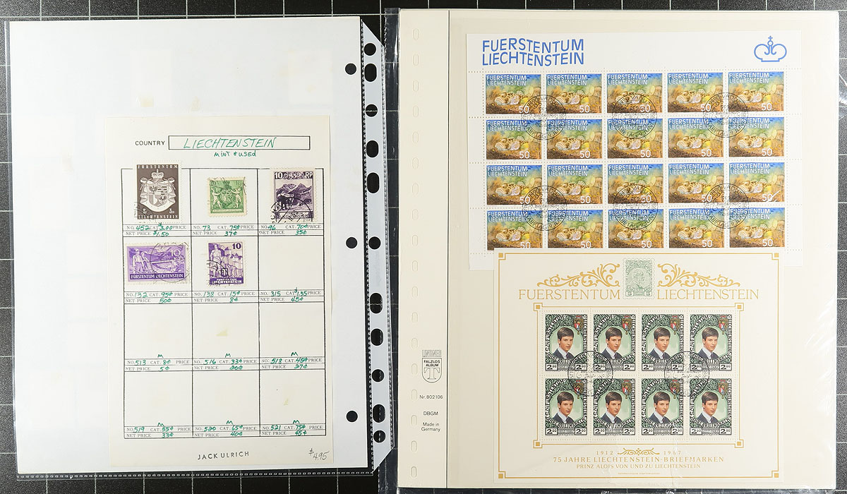 A used accumulation with a mix of classics and modern material and not much duplication, perfect for filling in holes or building a whole new collection. The best single is #104 (with a couple of blunt perfs, catalogue US$350.00), and we note the "Sports" issues of 1954 and 1955. There are some used souvenir sheets (including from 1936), a few groups of blocks (particularly 1987 and 1988 plus a folder with the Europa issue of 1978). Some used sheetlets, of 8 and 12 (mostly circa 1987) were seen and there are a few pages of singles up to about 2005. About US$1000.00 catalogue value here in total, with enormous cost to assemble this in the first place. Estimate =