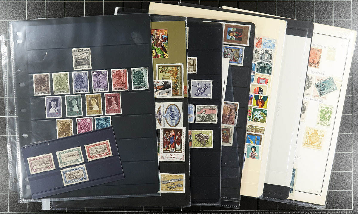 Mint accumulation the First. Received from a local estate a number of bidboard and dealer purchases which were set aside after purchase and never revisited. Because of its value, we have split the pile in two. Besides a wide range of singles, sets and some souvenir sheets, we noted key "Europa" issue #356 (never hinged), 1928 Rhine Flood Relief semi-postals #B7-B10. Expect some duplication and only a few faults. We estimated that the total catalogue value approaches US$1000.00. Estimate =
