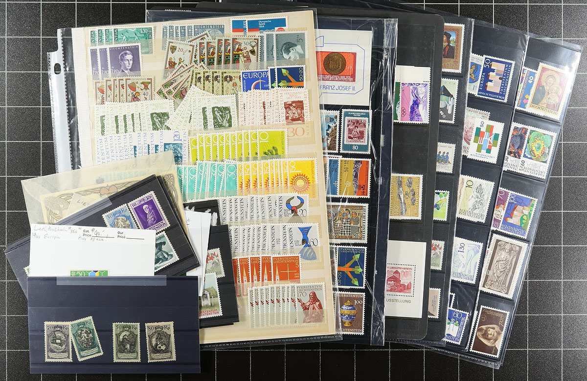 Mint accumulation the Second. Received from a local estate a number of bidboard and dealer purchases which were set aside after purchase and never revisited. Because of its value, we have split the pile in two. Besides a wide range of singles, sets and some souvenir sheets, we noted key "Europa" issue #356 (never hinged, but tiny gum flaw), and higher value singles #62, #64, #67-68. Expect some duplication (there is a bit of 1960's in wholesale quantities) and only a few faults. We estimated that the total catalogue value approaches US$1000.00. Estimate =