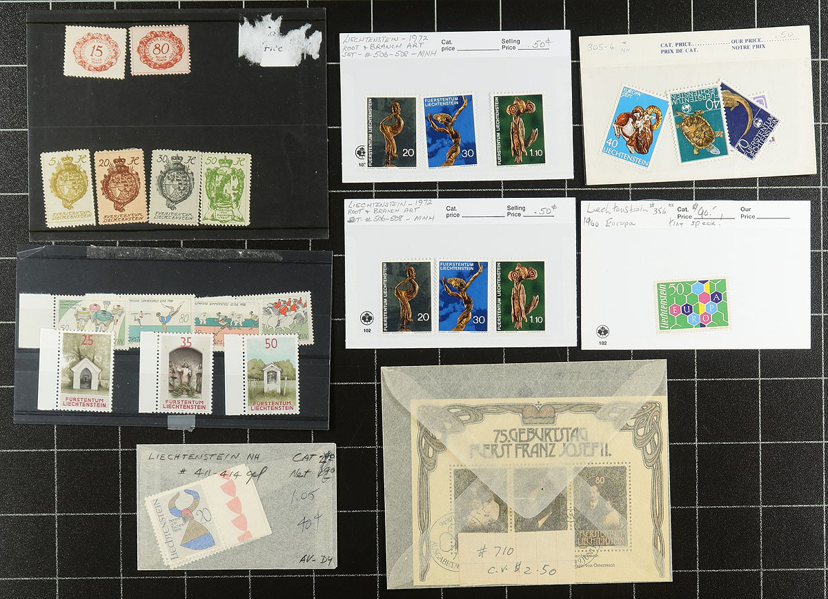 Mint accumulation the Second. Received from a local estate a number of bidboard and dealer purchases which were set aside after purchase and never revisited. Because of its value, we have split the pile in two. Besides a wide range of singles, sets and some souvenir sheets, we noted key "Europa" issue #356 (never hinged, but tiny gum flaw), and higher value singles #62, #64, #67-68. Expect some duplication (there is a bit of 1960's in wholesale quantities) and only a few faults. We estimated that the total catalogue value approaches US$1000.00. Estimate =