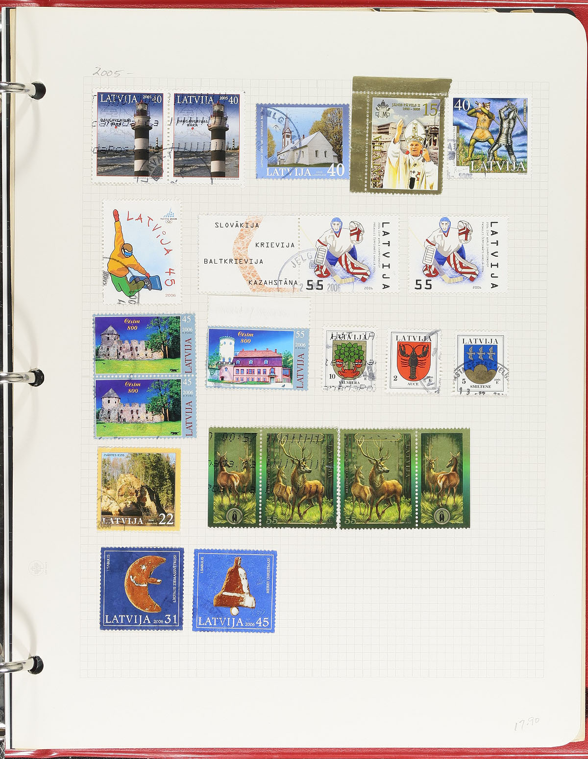 Accumulation of "L" countries, the strongest being Liechtenstein (dealer pages, a near-new Springback binder with a late 20th century mounted group, complete sheetlets of 20 of the 1993 Olympic issue #1016-1018). Next up is Luxembourg (mostly dealer pages) and there is a touch of modern Latvia and Lithuania. The total catalogue value is easily several hundred dollars. Estimate =