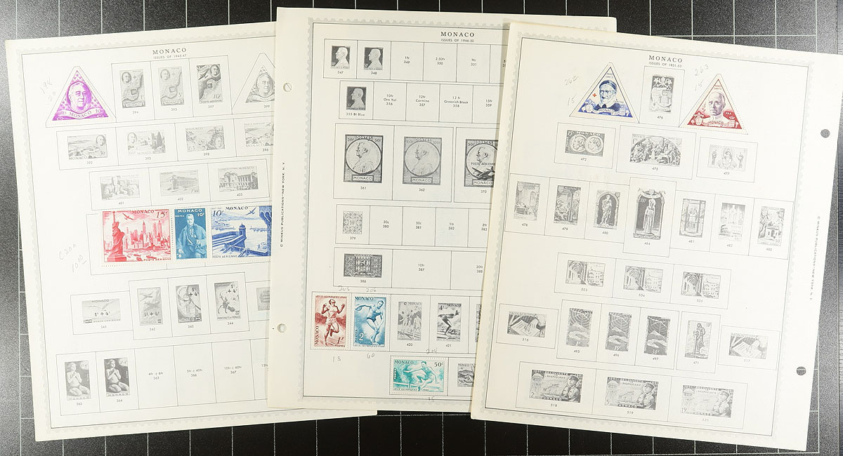 Collection Clutch #2: A group of bid board and auction lots from a local estate which were bought and then set aside. It was a substantial group which we have split into 5, each one has its own character. There is generally more mint than used, with some back of the book, with a mix of common and better items. Expect some duplication and a bit of mixed condition. Material covers just over a century after the 1880s. This lot includes a bit of classic material (11 mint stamps from #1/#26, a mounted collection on Scott Specialty pages up to 1982, a wholesale lot of 1957 Princess Grace, and a 1975 Postal Museum imperforate duo. Some other loose material is included but not counted in the estimated catalogue value of over US$1000.00 hundred dollars. Estimate =