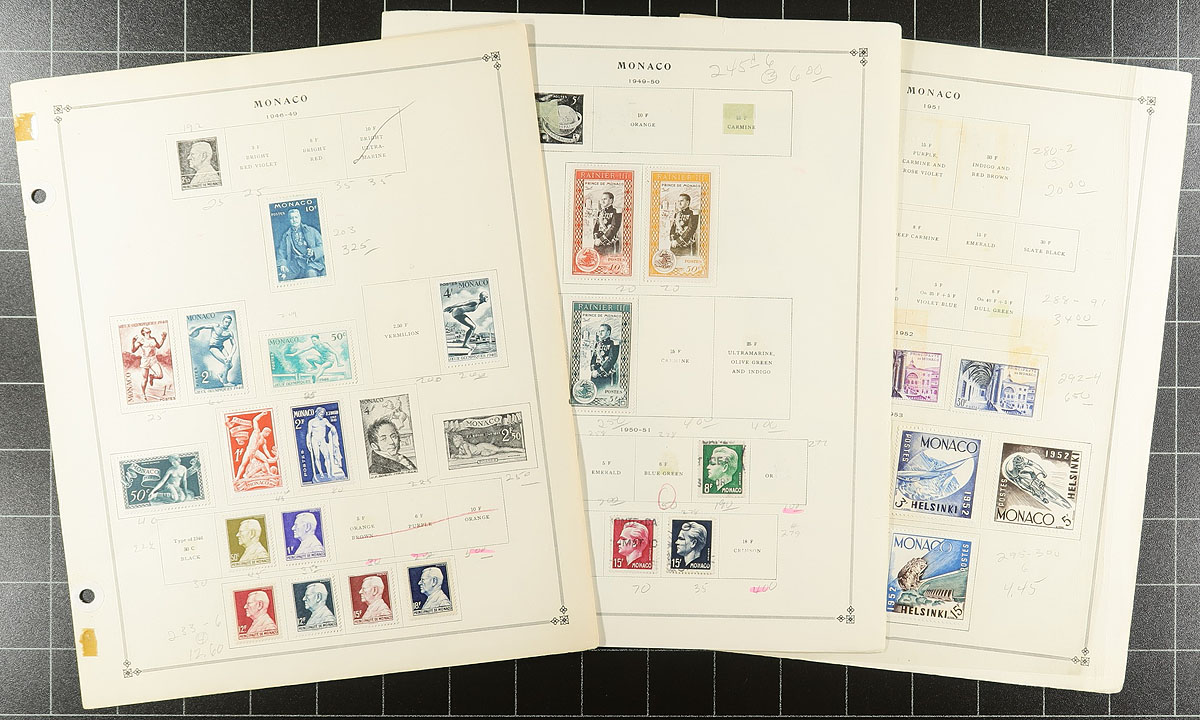 Collection Clutch #2: A group of bid board and auction lots from a local estate which were bought and then set aside. It was a substantial group which we have split into 5, each one has its own character. There is generally more mint than used, with some back of the book, with a mix of common and better items. Expect some duplication and a bit of mixed condition. Material covers just over a century after the 1880s. This lot includes a bit of classic material (11 mint stamps from #1/#26, a mounted collection on Scott Specialty pages up to 1982, a wholesale lot of 1957 Princess Grace, and a 1975 Postal Museum imperforate duo. Some other loose material is included but not counted in the estimated catalogue value of over US$1000.00 hundred dollars. Estimate =