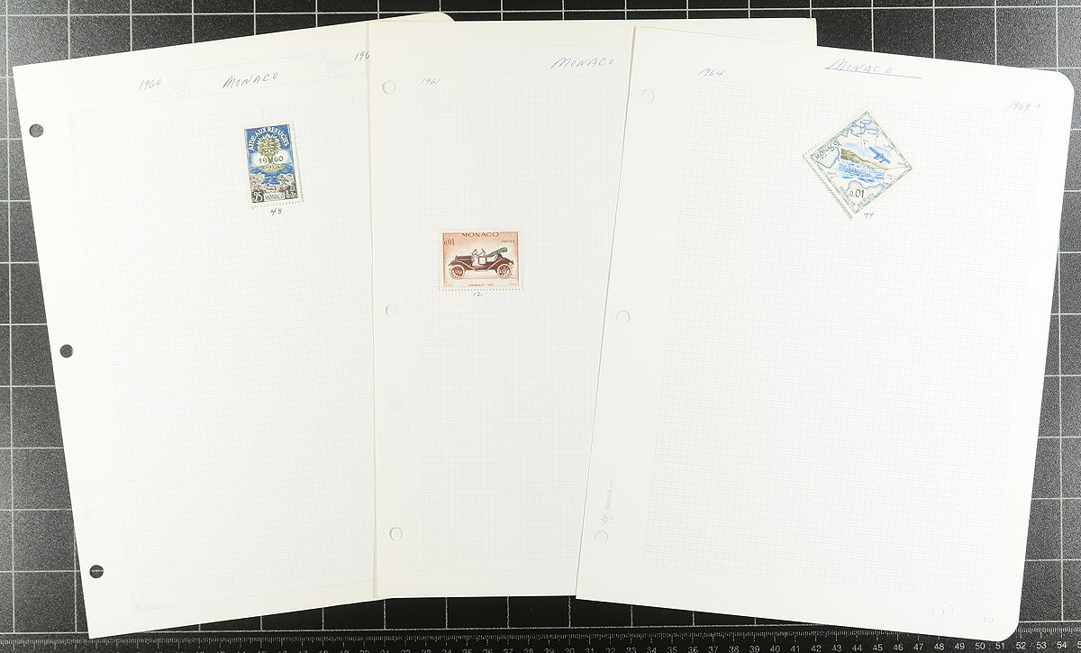 Collection Clutch #3: A group of bid board and auction lots from a local estate which were bought and then set aside. It was a substantial group which we have split into 5, each one has its own character. There is generally more mint than used, with some back of the book, with a mix of common and better items. Expect some duplication and a bit of mixed condition. Material covers just over a century after the 1880s. This lot includes a bit of classic material (#20 mint Prince Albert I VG with heavy hinge remnants), #110-130 used (#127 perfin), a nice accumulation of mint Princes Grace 1956-59 (includes a colour proof strip of 5). Some other loose material is included but not counted in the estimated catalogue value of several hundred dollars. Estimate =