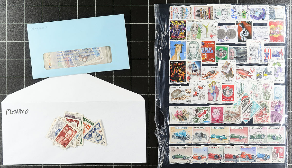 Collection Clutch #3: A group of bid board and auction lots from a local estate which were bought and then set aside. It was a substantial group which we have split into 5, each one has its own character. There is generally more mint than used, with some back of the book, with a mix of common and better items. Expect some duplication and a bit of mixed condition. Material covers just over a century after the 1880s. This lot includes a bit of classic material (#20 mint Prince Albert I VG with heavy hinge remnants), #110-130 used (#127 perfin), a nice accumulation of mint Princes Grace 1956-59 (includes a colour proof strip of 5). Some other loose material is included but not counted in the estimated catalogue value of several hundred dollars. Estimate =