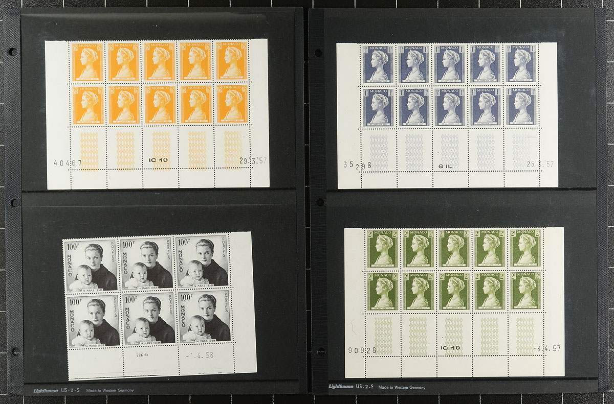 Collection Clutch #3: A group of bid board and auction lots from a local estate which were bought and then set aside. It was a substantial group which we have split into 5, each one has its own character. There is generally more mint than used, with some back of the book, with a mix of common and better items. Expect some duplication and a bit of mixed condition. Material covers just over a century after the 1880s. This lot includes a bit of classic material (#20 mint Prince Albert I VG with heavy hinge remnants), #110-130 used (#127 perfin), a nice accumulation of mint Princes Grace 1956-59 (includes a colour proof strip of 5). Some other loose material is included but not counted in the estimated catalogue value of several hundred dollars. Estimate =