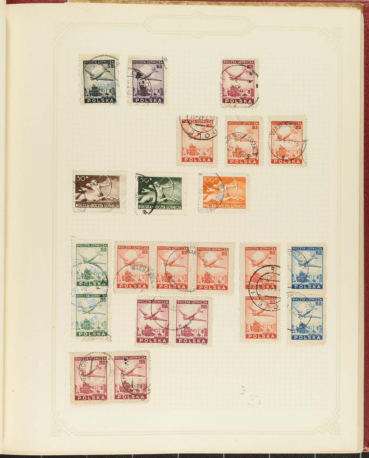 Another one of the ever-popular "Throw everything in a box" lots, with several albums, stockbooks, etc. Lots of "olde time" collections (or parts of collections), all unpicked and offered as received - this one from a local estate. In random order, there is a collection of "H" and "I" countries (strength in Hungary and Italy), from a different source is "J-L" countries. There are two red Simplex springback binders (one with a worldwide air mail collection), with the other with a "sampler" of worldwide material. Two stockbooks have an assortment of worldwide, plus two smaller stockbooks with some interesting back of the book, including revenues and labels. A very battered Scott International album has hundreds (or more) stamps up to 1930, laden with potential. There is a green springback with pre-WWII Germany (and some "States"), and there are even a few loose stockpages rounding things out. Hours of winter fun here! Estimate =