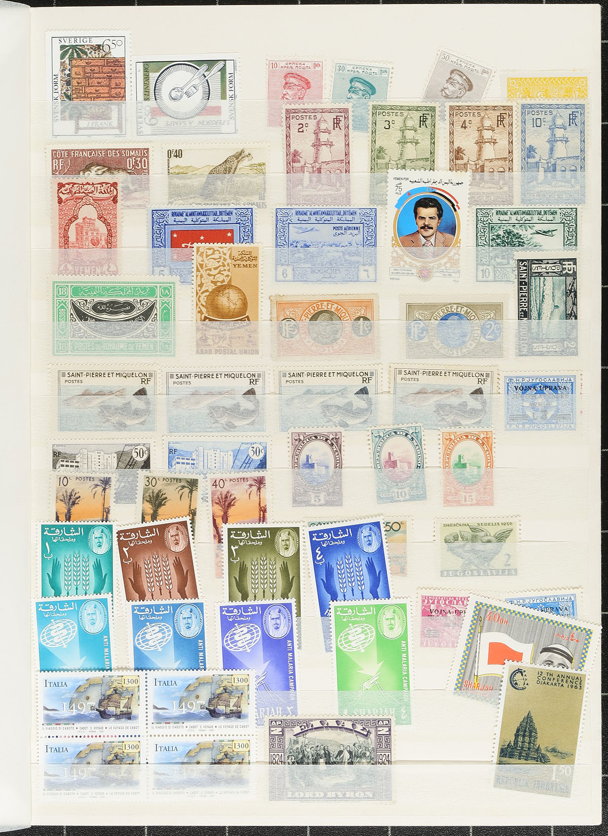 Another one of the ever-popular "Throw everything in a box" lots, with several albums, stockbooks, etc. Lots of "olde time" collections (or parts of collections), all unpicked and offered as received - this one from a local estate. In random order, there is a collection of "H" and "I" countries (strength in Hungary and Italy), from a different source is "J-L" countries. There are two red Simplex springback binders (one with a worldwide air mail collection), with the other with a "sampler" of worldwide material. Two stockbooks have an assortment of worldwide, plus two smaller stockbooks with some interesting back of the book, including revenues and labels. A very battered Scott International album has hundreds (or more) stamps up to 1930, laden with potential. There is a green springback with pre-WWII Germany (and some "States"), and there are even a few loose stockpages rounding things out. Hours of winter fun here! Estimate =