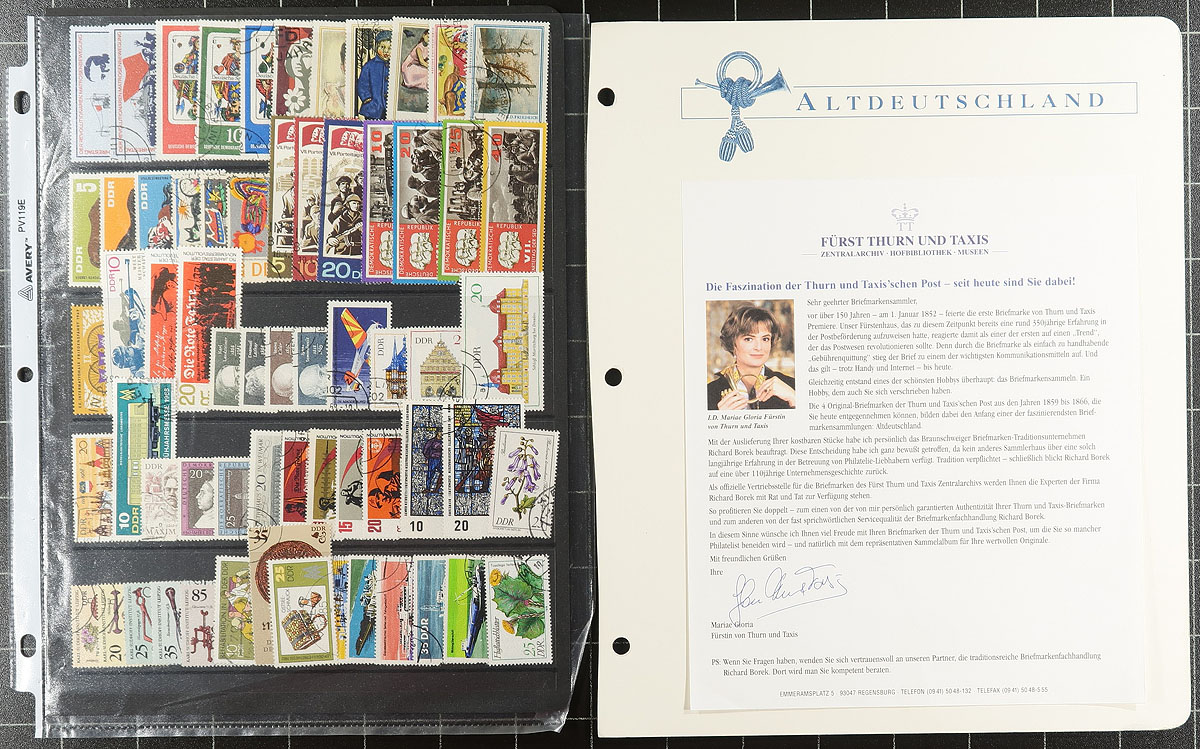 Germanic Joy #3: A fun group of German collections, accumulations and some assorted sets and singles. This group is an assortment of mint and used stamps from several sources with lots of early to 1950 material, but with pockets into the 1990s plus some Nazi-era event cancels, a bit of East Germany (including some complete booklets). Over US$1000.00 catalogue value here. Estimate =