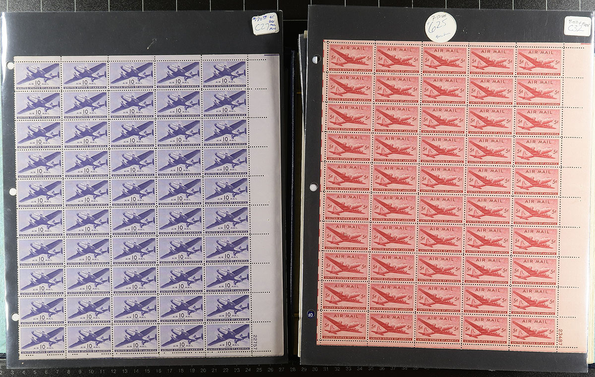 Bankers box filled with the balance of an estate, much of what is former bidboard lots which were purchased and then set aside. Noted a few, mostly used mounted collections up to the 1990's (one album originally sold for over $100), and a number of smaller lots on cards or pages, includes some "classic" 19th century material, some back of the book, a bit of precancel. Disorder and duplication are to be expected, but there could be gems hiding here. Offered as received. Estimate =
