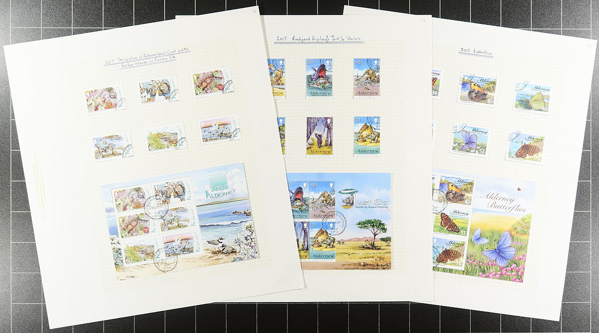 Clean, comprehensive and near-complete 1983-2009 period (plus two 2013 sets) collection of used stamps and souvenir sheets, all neatly laid out on quadrille album pages. All the material is favour cancelled, often with First Day Cancels. While mint NH stamps from this popular Channel Island are find-able, used stamps of any kind are very elusive. Enormous original cost, with much higher catalogue value in Stanley Gibbons. 2024 Scott US$609.50 =